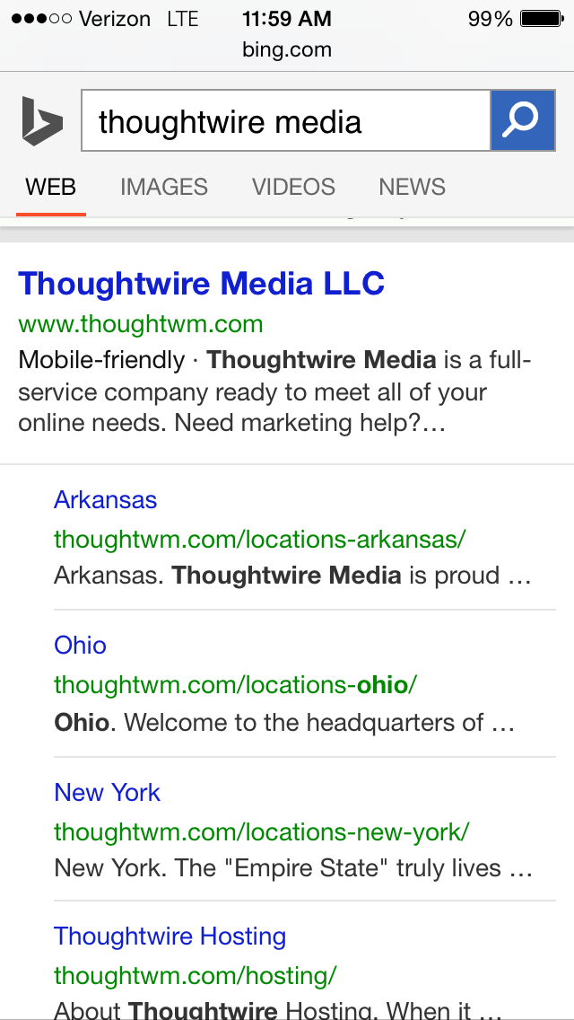 Bing has not yet given a date of when their algorithm will go live, but they have already started tagging whether or not a website is mobile-friendly. You can see in the example below that Thoughtwire's results on Bing are indeed tagged as mobile-friendly.